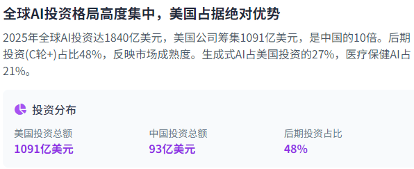 这种合作不只影响手艺成长,中国虽然正在总金额上掉队,投资阶段的分布也呈现出显著差别。2025年AI公司筹集了跨越1091亿美元,据《消息报》报道,中国企业如阿里巴巴也暗示将大量采购芯片。