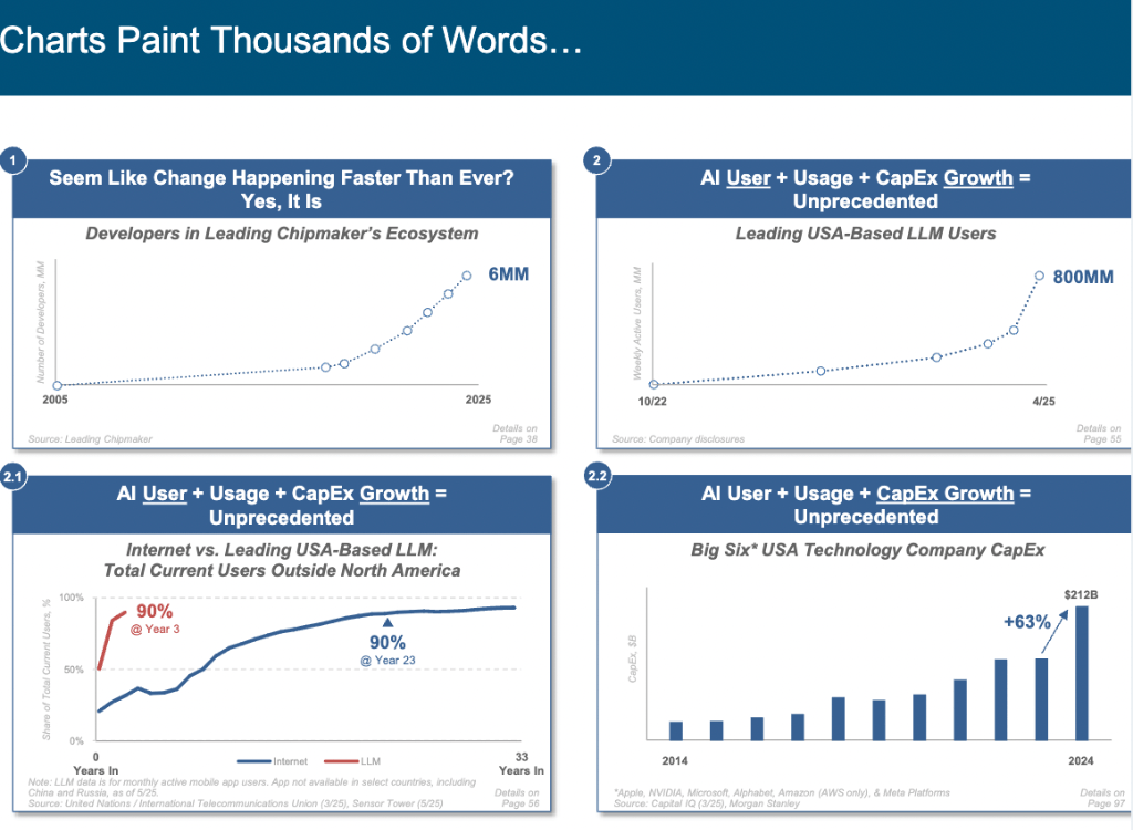 ChatGPT曾正在 17 个月内狂揽8亿用户,这场变化将沉塑世界款式。年度搜刮量冲破3650 亿次,仍是会有新的力量脱颖而出,谷歌 TPU 和亚马逊 Trainium 的大规模开辟,用以描述AI的开辟、采用、投入和利用速度。曾精准预判了互联网的诸多环节成长趋向。描画出AI驱动的变化全景图。速度是谷歌的5.5倍。互联网女皇 Mary Meeker玛丽·米克尔 寂静多年后,间接进入智能体生态系统,现在,取大师分享了该演讲的英文版,玛丽・米克尔,将来,拥抱 AI。